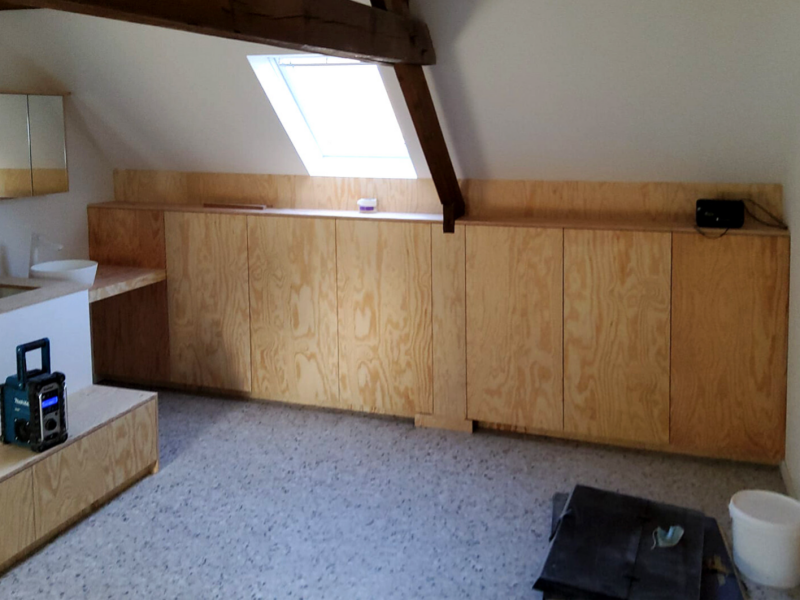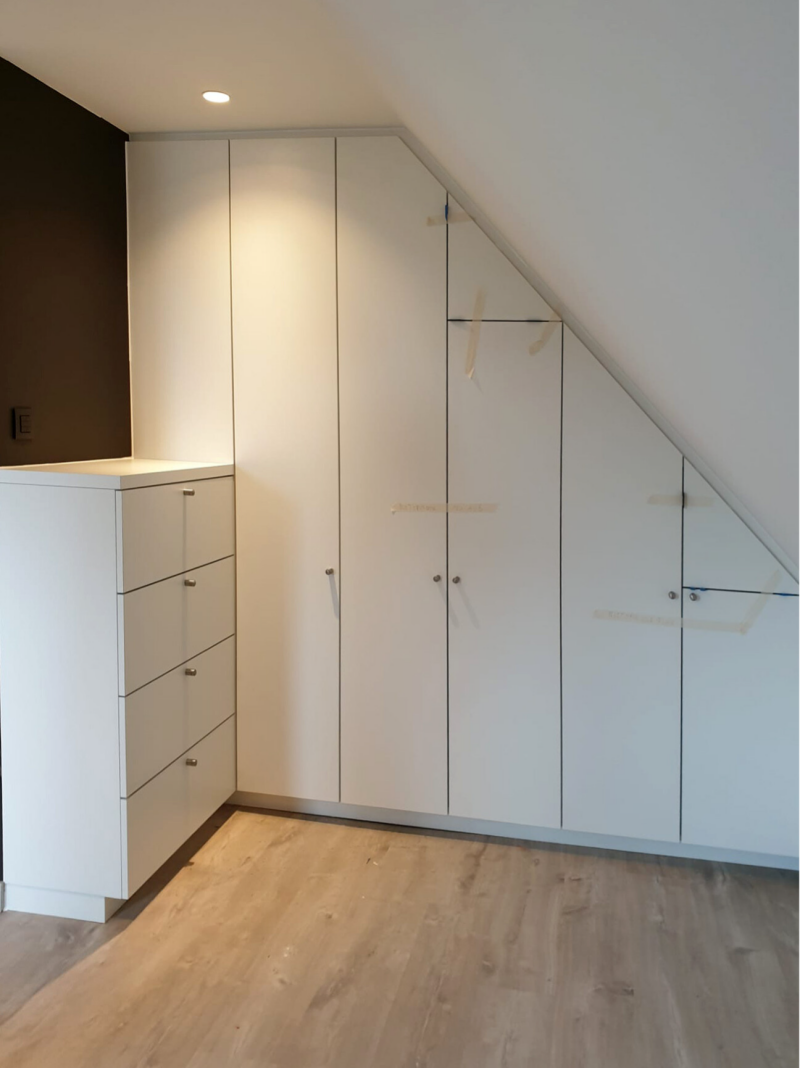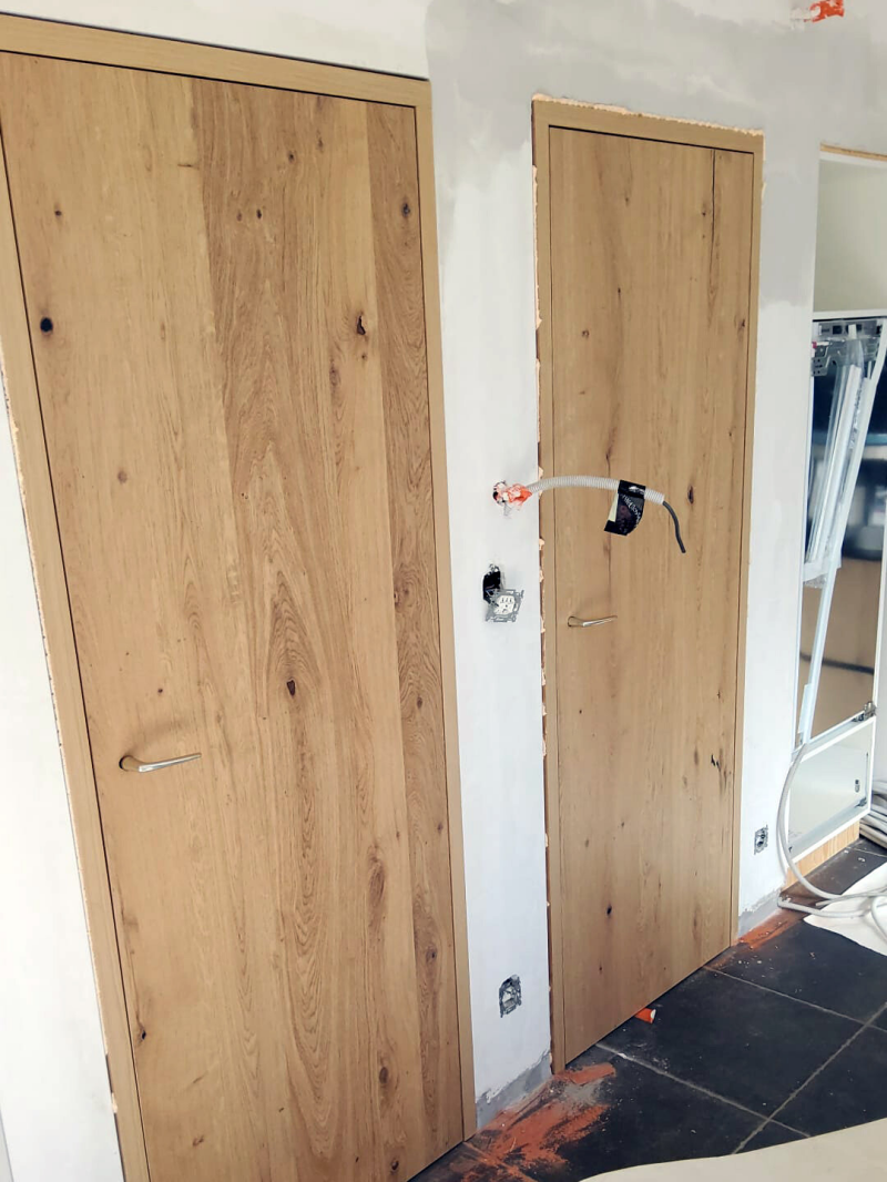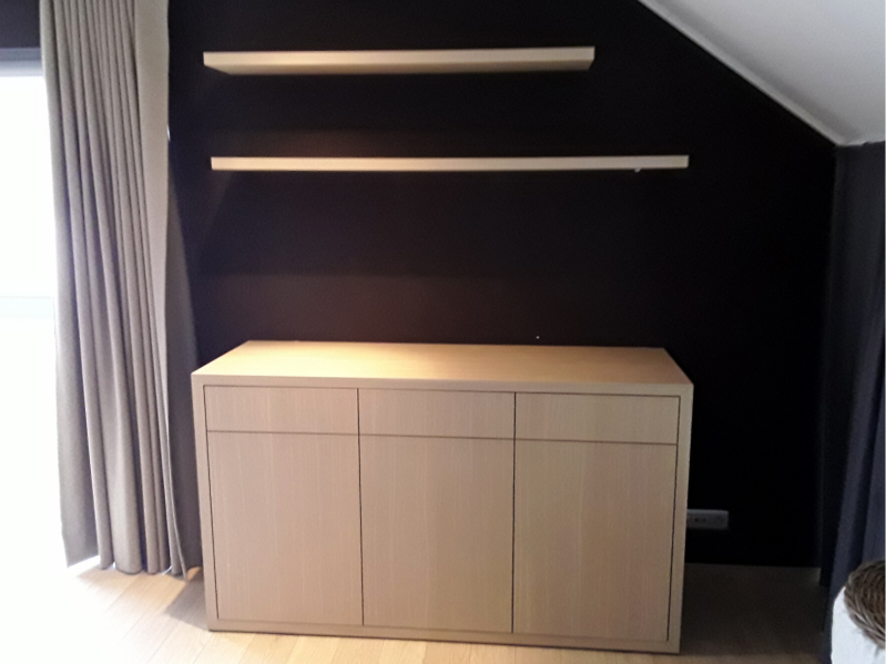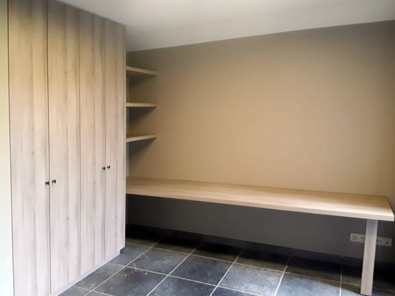 Enkele realisaties van binnenschrijnwerken, van kasten en deuren tot meubelstukken.